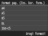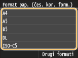 Ako se zaslon prikazan iznad ne prikazuje, a papir je umetnutAko uvijek umećete isti papir u utor za ručno ulaganje, preskočite operacije postavljanja papira tako da registrirate format papira i vrstu kao standardne postavke. Kada je registrirana standardna postavka, međutim, zaslon iznad se ne prikazuje. Da bi se prikazao zaslon, odaberite <Isključeno> za <Registriraj stand. postavke> (Registriranje standardnih postavki papira za utor za ručno ulaganje).