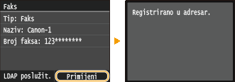 Unesite broj ili adresu pomoću numeričkih tipki, a zatim dodirnite <Primijeni>.