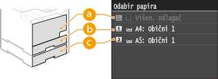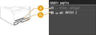 Najprije morate navesti veličinu i vrstu papira koji je umetnut u izvor papira.