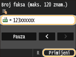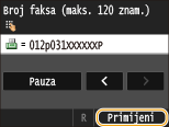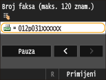 Dodirnite postavku <Pauza> da biste ako je potrebno na kraj broja faksa umetnuli pauzu.