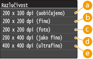 Možete odabrati razlučivost prikladnu za vrstu dokumenta. Što je veća razlučivost, slika je jasnija, no slanje traje dulje.