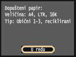 Provjerite je li u uređaj umetnut papir formata i vrste prikazan na zaslonu, a zatim dodirnite <U redu>.