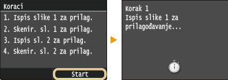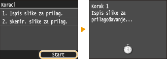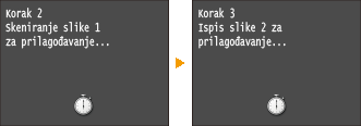 Uređaj skenira sliku za prilagodbu te prilagodba započinje. Druga slika za prilagodbu bit će ispisana nakon otprilike 30 sekundi.