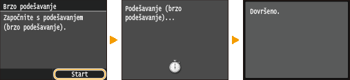 Ta prilagodba održava optimalno stanje dobiveno pomoću postupka <Potpuno podešavanje>. Imajte na umu da tu prilagodbu nije moguće provesti za vrijeme izvršavanja nekih funkcija, uključujući skeniranje i ispis. Ako rezultat te prilagodbe nije zadovoljavajući, izvršite <Potpuno podešavanje>. Ta će se prilagodba možda automatski provesti nakon što zamijenite spremnik tonera.