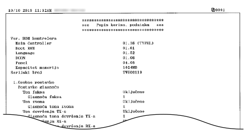 Popis korisničkih podataka ne sadrži popise postavki za <Mrežne postavke>, <Postavke upravljanja sustavom> ili dio postavki za <Postavke faksa>. Da biste provjerili sve postavke, uključujući <Mrežne postavke>, <Postavke upravljanja sustavom> i sve <Postavke faksa>, ispišite <Popis podataka o upravitelju sustava>.