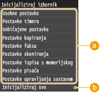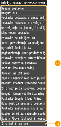 <Mrežne postavke> <Inicijaliziranje mrežnih postavki> <Da>, a zatim ponovno pokrenite uređaj. |