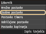 Omiljene postavke faksiranja Omiljene postavke skeniranja Postavljanje redoslijeda prikazivanja Umetni i izbriši razmak |