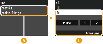 Unesite pristupni broj vanjske linije ako odaberete <Prefiks>