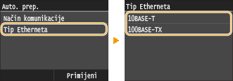 , dodirnite <10BASE-T> ili <100BASE-TX>.![]() |