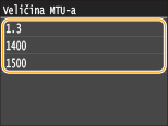 U većini Ethernet mreža maksimalna veličina paketa koji se može poslati iznosi 1500 bajtova. Paket su manje količine podataka na koje se izvorni podaci dijele prije slanja. Maksimalna jedinica za prijenos (MTU) razlikuje se od mreže do mreže. Promijenite postavke uređaja prema potrebi. Dodatne informacije zatražite od mrežnog administratora.