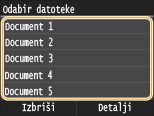 Ako se u memoriji nalaze zaštićeni dokumenti dvaju ili više korisnika, zaslon <Odabir korisnika> prikazat će se prije zaslona <Odabir datoteke>. Odaberite svoje korisničko ime.