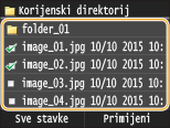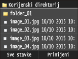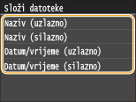 Kada odaberete <Datum/vrijeme (uzlazno)> ili <Datum/vrijeme (silazno)>, datoteke se sortiraju na temelju datuma i vremena izmjene datoteka.