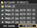 Način prikaza možete promijeniti iz prikaza <Detalji> (za nazive datoteka i datume izmjena) u prikaz <Slike> (za pretpreglede). Pomoću pretpregleda slika možete provjeriti sadržaj datoteka prije nego što odaberete datoteku za ispis.