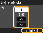 Navedite broj primjeraka od 1 do 99. Dodirnite