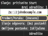 Ako želite navesti ime pošiljatelja poruke e-pošte:Registriranje naziva jedinice (e-pošta/I-Faks)