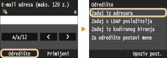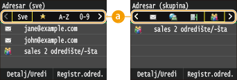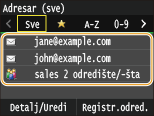 Adresar omogućuje definiranje odredišta odabirom s popisa registriranih odredišta ili pretraživanjem po imenu za odredišta s imenima primatelja.