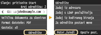 Ako želite jednostavno i brzo izbrisati odredišta bez prikaza popisa odredištaPrije nego li u prvom koraku odaberete stavku <Potvr./uredi>, možete promijeniti definirana odredišta pomoću