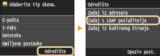 Ako je u vašem uredu instaliran LDAP poslužitelj, možete koristiti odredišta registrirana na poslužitelju. Da biste definirali odredišta, putem uređaja pristupite LDAP poslužitelju, a zatim potražite odredište.