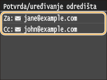 Prije nego li u prvom koraku odaberete stavku <Potvr./uredi>, možete promijeniti definirana odredišta pomoću  /  . Odaberite odredište koje želite izbrisati, a zatim pritisnite  .