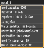 Ako je <Prikaz dnevnika zadataka> postavljen na <Isključeno>, poslane dokumente nije moguće provjeriti u dnevniku. Prikaz dnevnika zadataka