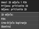Ako je za ID odjela postavljen PIN, unesite broj od najviše sedam znamenki.
