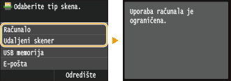 ![]() Ako je potvrđen okvir [Scan], ograničene su funkcije spremanja na USB memorijski uređaj, slanja poruka e-pošte i spremanja u zajedničku mapu ili FTP poslužitelj. Možete ograničiti i druge načine koji skeniraju dokumente tako da ih uvezete na računalo, ali u tom slučaju ne možete blokirati pristup za svaki ID odjela (Blokiranje poslova kada ID odjela nije poznat).