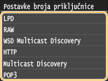 Priključci služe kao krajnje točke za komunikaciju s ostalim uređajima. Obično se za glavne protokole koriste uobičajeni brojevi priključaka, no uređaji koji koriste te brojeve priključaka podložni su napadima jer su ti brojevi priključaka općepoznati. Administrator mreže može radi poboljšanja sigurnosti promijeniti brojeve priključaka. Kada se promijeni broj priključka, novi se broj mora razmijeniti s komunikacijskim uređajima kao što su računala i poslužitelji. Definirajte postavke broja priključka u skladu s mrežnim okruženjem.