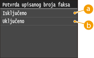 Uređaj možete postaviti tako da od korisnika dvaput traži unos broja faksa ako se broj unosi pomoću numeričkih tipki. Na taj se način smanjuje rizik faksiranja na pogrešan broj zbog pogrešnog unosa.