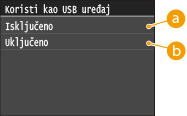 Onemogućuje USB priključak za povezivanje s računalom na stražnjoj strani uređaja.