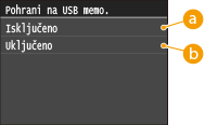 Zabranjuje pohranu podataka na USB memorijski uređaj. Skenirane podatke nije moguće pohraniti na USB memorijski uređaj.