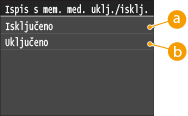 Dodirnite <Ispis s memorijskog medija uklj./isklj.>.