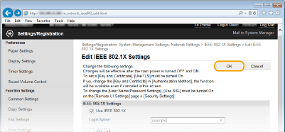 Provjeru autentičnosti IEEE 802.1X možete omogućiti ili onemogućiti u izborniku <Izbornik> na zaslonu <Početni zaslon>. Postavke IEEE 802.1X