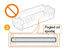 ) ne praskajte in je ne izpostavljajte svetlobi.![]() Kartuše s tonerjem ne odstranite iz naprave ali iz zaščitne embalaže, če to ni potrebno.
