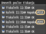 Če tiskanje ne uspe ali ne morete poslati ali sprejeti faksa ali skeniranega dokumenta ali če pride do druge napake, se na poročilu ali v sporočilu na zaslonu <Nadzor stanja> prikaže napaka v obliki trimestne številke (koda napake). Spodaj preverite vzroke in rešitve za posamezne kode napak. Za informacije o tiskanju poročila o napakah in o informacijah v poročilu glejte