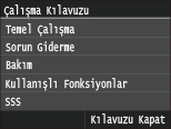 Kullanım kılavuzunu ve hata nedenlerini/çözümlerini görüntülemek için basın.