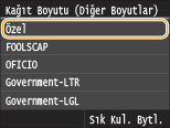 Özel kağıt boyutu kaydını yapma