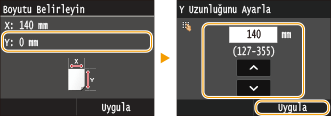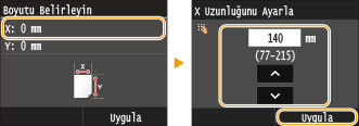/ öğesini ya da sayı tuşlarını kullanarak <X> tarafının uzunluğunu girin ve <Uygula> öğesine dokunun.![]() |
