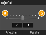 Bir belgedeki metin veya resimler çok açık veya çok koyuysa, kopyanın yoğunluğunu ayarlayabilirsiniz. Belge sayfaları açık renkliyse veya sarılaşmışsa arka plan rengini kaldırmak üzere ayarlayabilirsiniz.