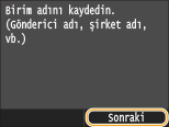 Makinenizin faks numarasını ve ünite adını kaydedin. Bu bilgi, makineden gönderilen her sayfanın üst kısmına yazdırılır.