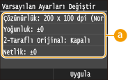 Varsayılan ayarlar, makineyi her açık duruma getirdiğinizde veya