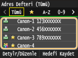 Adres Defterini kullanma talimatları için bkz. Adres Defterinden Belirtme (Faks).