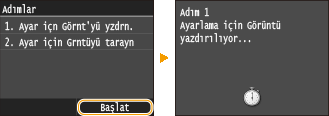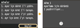 Bu ayar, kopya ve USB bellek cihazından yazdırma sonucunu geliştirir. Kopya resimleri düzeltmek için bir ayar resmi yazdırılır ve taranır. Tarama ve yazdırma dahil olmak üzere bazı işlevleri gerçekleştirirken bu ayarlamayı gerçekleştiremeyeceğinizi unutmayın.
