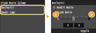 Siyah veya siyaha yakın metinlerin kopyalama sonuçları tatmin edici değilse bu ayarlama ile renk üretilebilirliğini iyileştirebilirsiniz. Bu ayarlama değeri besleyicide ve plaka camında bağımsız olarak da yapılabilir.