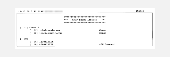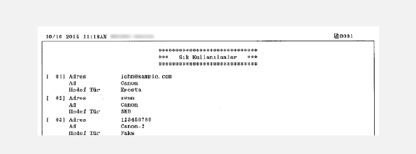 Adres Defterinde <Kodlu Arama>, <Sık Kullanılanlar> ve <Grup Arama> olarak kayıtlı hedefler listesini bir Adres Defteri Listesi yazdırarak denetleyebilirsiniz.