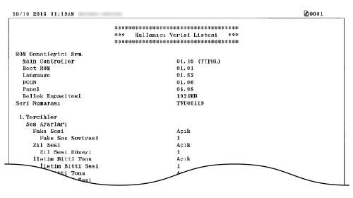 Kullanıcı Verisi Listesi, <Ağ Ayarları>, <Sistem Yönetimi Ayarları> ayar listelerini veya <Faks Ayarları> listesinin bir kısmını içermez. <Ağ Ayarları>, <Sistem Yönetimi Ayarları> ve tüm <Faks Ayarları> da dahil olmak üzere tüm ayar öğelerini denetlemek için <Sistem Yöneticisi Veri Listesi> öğesini yazdırın.