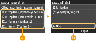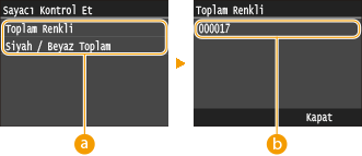Renkli ve siyah beyaz çıktılar için kullanılan sayfa sayılarının toplamlarını ayrı ayrı denetleyebilirsiniz. Bu toplamlara fakslar, raporlar ve listeler ile bilgisayarlardaki verilerin kopyaları ve çıktıları dahildir.