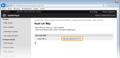 [Kayıt URL'si] için görüntülenen URL bağlantısını tıklatın.