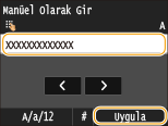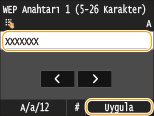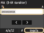 Sayı tuşlarını kullanarak ağ anahtarını girin ve <Uygula> öğesine dokunun. Metin Girme