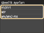 ![]() <Otomatik>Makineyi, kablosuz yönlendiricinin ayarıyla eşleşmesi için otomatik olarak AES-CCMP veya TKIP seçecek şekilde ayarlar.