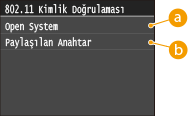 Paylaşılan anahtar kimlik doğrulaması kablosuz yönlendiricide ayarlandıysa, kablosuz LAN'a bağlanılırken makine bir kimlik doğrulama hatasıyla karşılaşır. Bu durumda makine otomatik şekilde ayarı <Paylaşılan Anahtar> olarak değiştirir ve bağlantıyı yeniden dener.